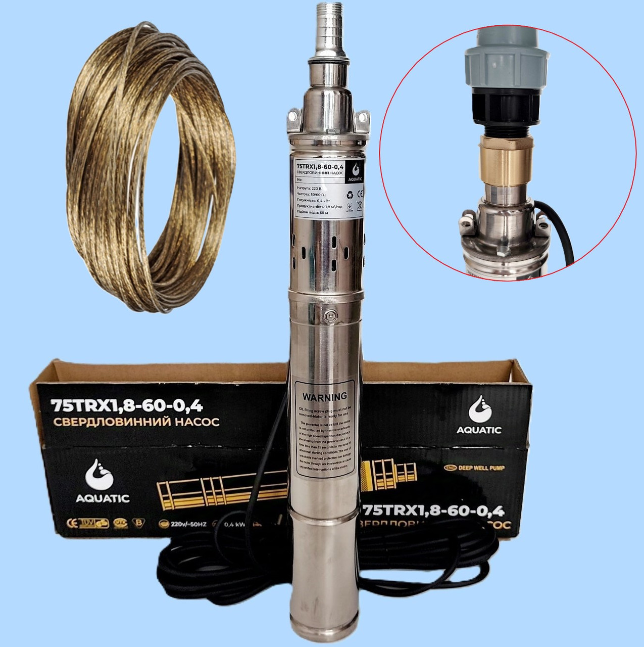Заглибний насос 75 мм AQUATIC TRX1.8-60-0,3 гарантійний сервіс 5 років із клапаном і тросом